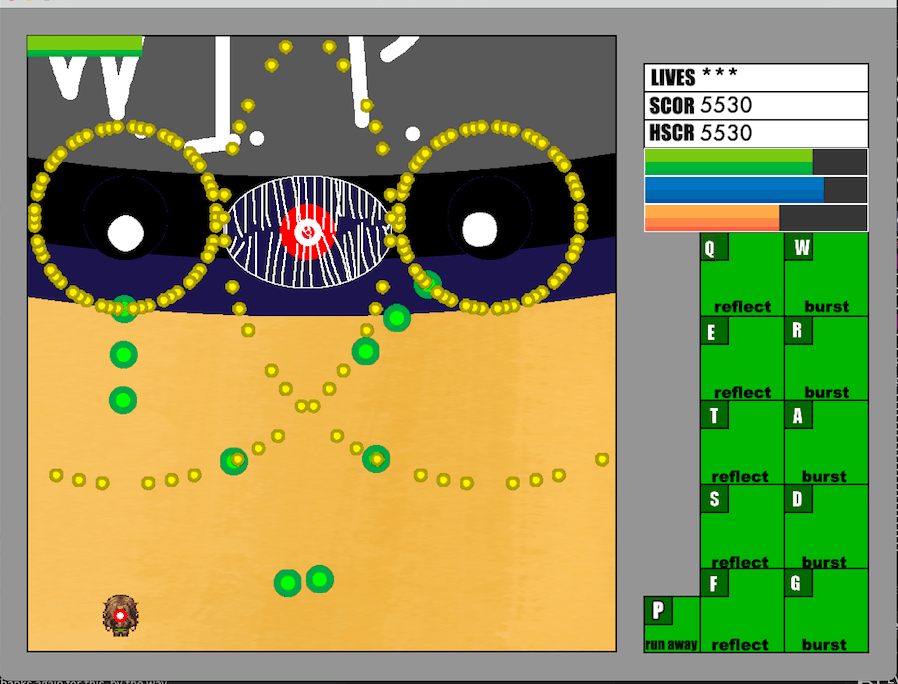This week, I proliferated enemy types on the RPG side of things so that more than one type of encounter is possible. In addition, I reintroduced both boss events, and also added some dialogue before, during and after the fight. Specifically regarding the shooter version of the boss fight, I also adjusted the boss’s attack patterns to appear more intimidating and reduce “safe zones” where the player can’t be hit at all. I did this because the original ones were too predictable for my liking and I wanted to experiment with the bullet production code some more. I am currently satisfied with the results, but I reserve the right to double back and make more on-a-whim changes later.